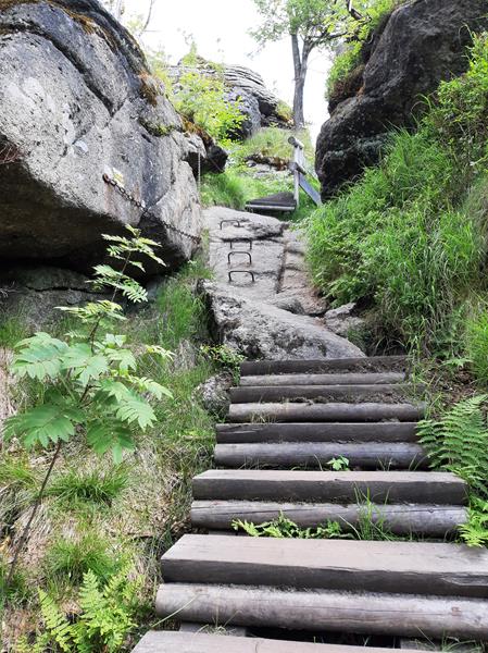 Kamienie południowe wznoszą się 2 km na południe od wsi Bílý Potok (425 m n.p.m.) i są najbardziej wysuniętym na południe masywem tzw. blanków Frýdlantu, na który składa się kilka formacji skalnych i skał (Hajní kostel, Frýdlantské cimbuří i inne mniejsze formacje skalne). Na południowy wschód od Polední kamen leży Smědavská hora (1084 m n.p.m.), a na południowy zachód od niej prowadzi droga Štolpišská.